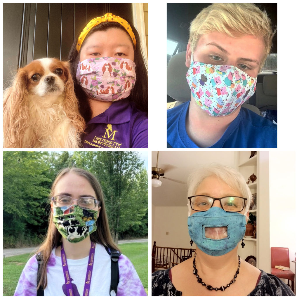 Dr. Tiffany Wang (top left), Carson Reed (top right), Carmen Avans (bottom left) and Dr. Cynthia Mwenja (bottom right) showing off their masks.