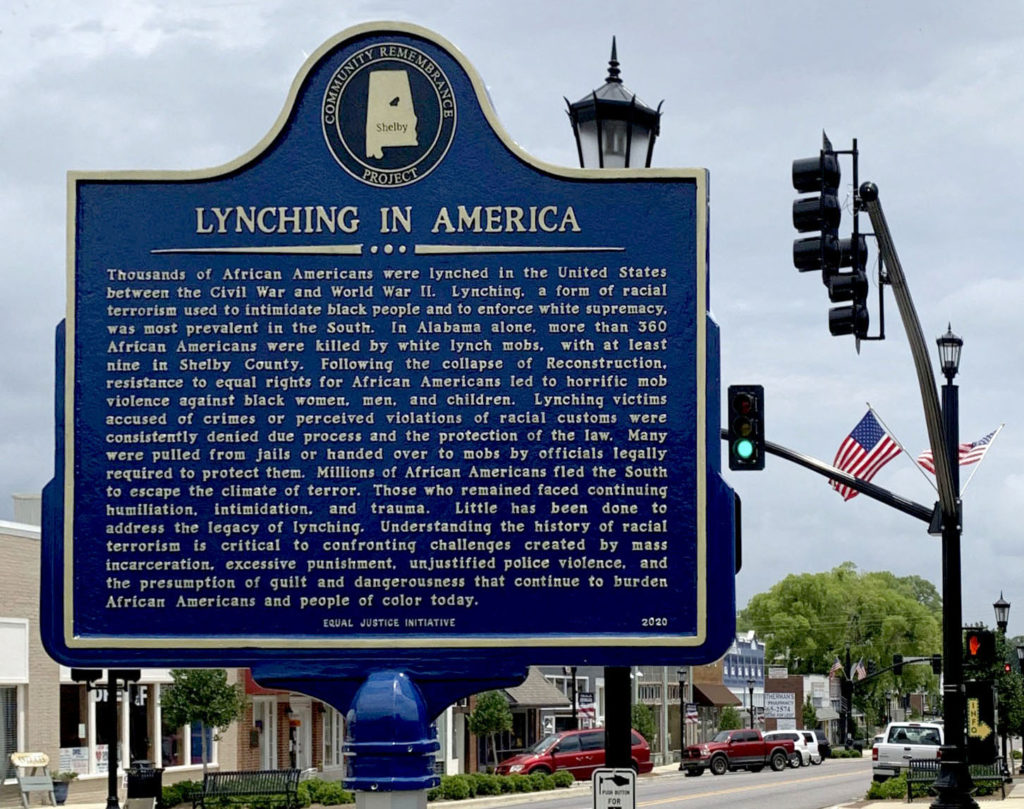 Montevallo, Ala. – An Equal Justice Initiative historical marker recognizing victims of an 1889 double lynching now stands in downtown Montevallo at the corner of Main and Shelby Streets. A dedication ceremony scheduled for April 2 was cancelled due to COVID-19 health concerns. People are encouraged instead to visit the site in small socially distanced groups.